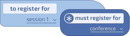 With ticketing rules, you can create conditions to register for the event, e.g, unless attendee registered for the conference, can't register for a session in the conference.